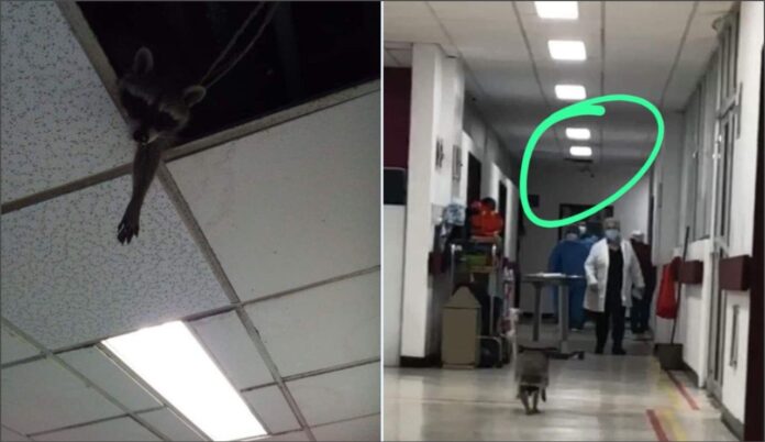 Una prueba de ello son las fotografías compartidas por la periodista Lourdes Mendoza, a través de Twitter, donde es captado un mapache en uno de los quirófanos del Hospital General en la entidad.