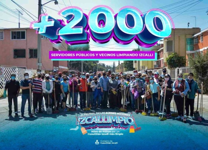 Más de dos mil servidores públicos y vecinos de Cuautitlán Izcalli se dieron cita en la jornada que tuvo como punto de arranque el Jardín del Arte del Parque de las Esculturas para dar inicio al Festival de las Buenas Acciones “Izcallimpio”, el cual tuvo por objeto limpiar 20 espacios urbanos ubicados en los 13 pueblos y en las avenidas principales del municipio.