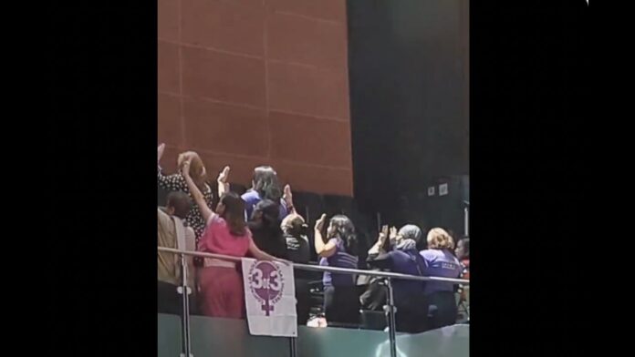 Mujeres dan la espalda a Fernández Noroña durante sesión de la Ley 3 de 3