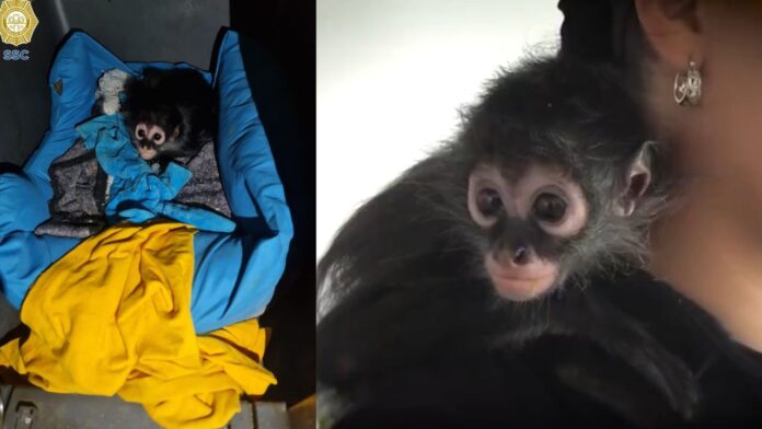 Un mono araña que fue rescatado durante un operativo realizado por elementos de la Secretaría de Seguridad Ciudadana (SSC-CDMX), en la alcaldía Gustavo A. Madero, fue trasladado a las instalaciones de la Procuraduria Federal de Proteccion al Ambiente (Profepa).