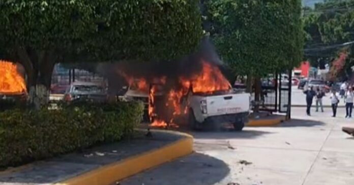 Normalistas vandalizan e incendian vehículos en el Congreso de Guerrero