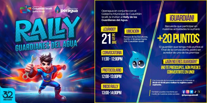 La presidenta municipal, Karla Fiesco a través de OPERAGUA invita a la ciudadanía a conmemorar el aniversario de OPERAGUA con la primera reunión de los Guardianes del Agua que se llevará a cabo el 21 de octubre de 2023 en un horario de 11:30 a 14:00 horas en el Parque de las Esculturas, este evento marcará el lanzamiento del tercer capítulo de la “Campaña Guardianes del Agua”, con el objetivo de concientizar a las niñas y niños del municipio sobre la importancia de preservar y cuidar nuestro recurso más valioso, el Agua.