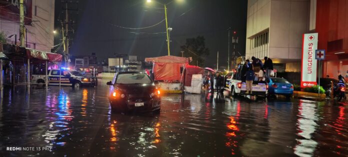 Una de las áreas más afectadas fue la calle Miguel Hidalgo esquina con Oro, en Llano de los Báez, además de avenida México en Tulpetlac, lo que motivó la intervención inmediata de cuadrillas de Protección Civil, Bomberos, SAPASE, Servicios Públicos y Tránsito Municipal, quienes se desplegaron en territorio con camiones vactor para retirar el agua pluvial acumulada.
