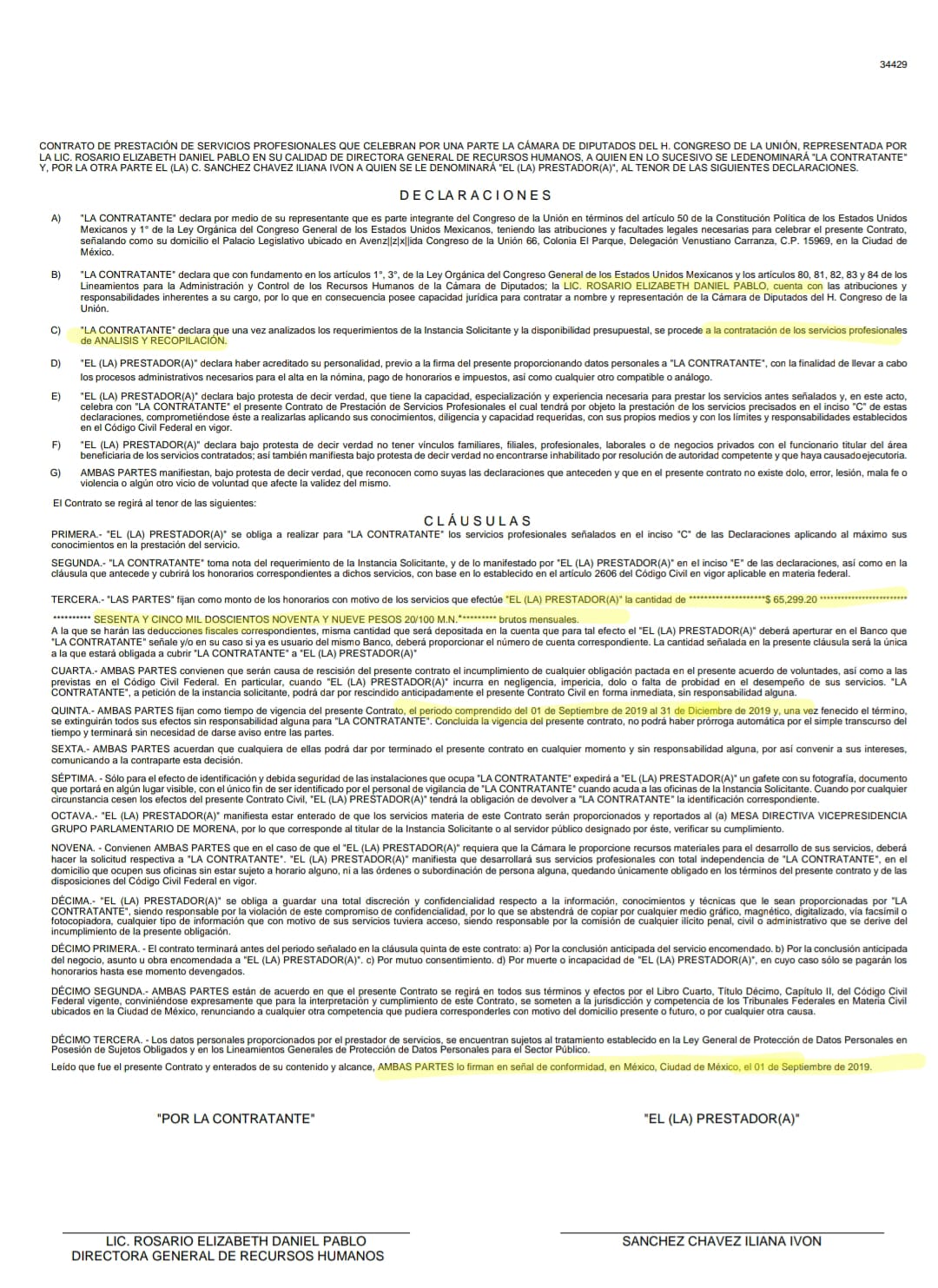 El primero de ellos le otorgó 125 mil 650 pesos a Ivón Sánchez durante 2017 mientras Padierna era Senadora y 195 mil 897 pesos en el 2019 cuando Dolores fungió como Diputada Federal.