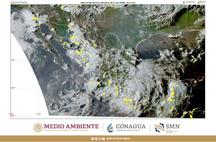 Mientras tanto, el monzón mexicano generará lluvias muy fuertes con descargas eléctricas, posible granizo y fuertes rachas de viento con posibles tolvaneras en Chihuahua, Durango, Sinaloa y Sonora, e intervalos de chubascos (de 5 a 25 mm) en Baja California y Baja California Sur.
