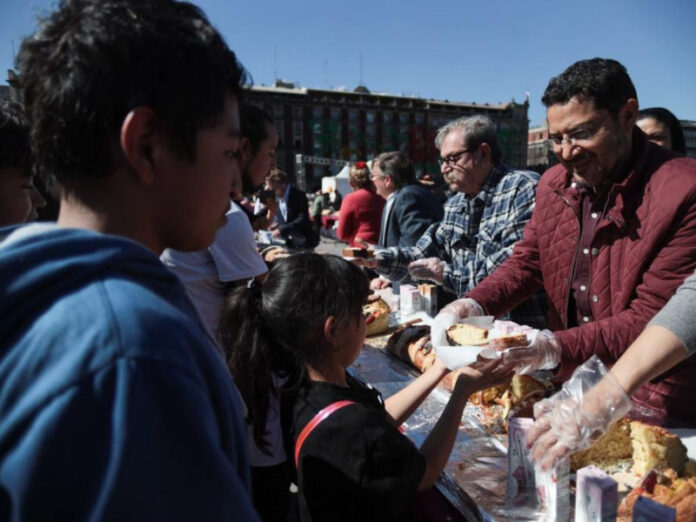 Para cerrar con broche de oro el maratón de festividades de fin de año, desde la Plancha del Zócalo capitalino, poco más de 15 mil personas, en muchos casos, familias enteras, disfrutaron este 6 de enero de la tradicional partida de “Rosca de Reyes”, acompañada con lechitas de sabores.