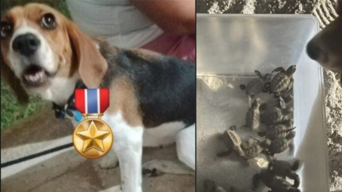 De acuerdo con las primeras indagaciones, la perrita de raza Beagle se encontraba jugando con unos niños en la playa cuando se percató de los animales marinos, por lo que comenzó a ladrar para alertar a las personas de su alrededor.