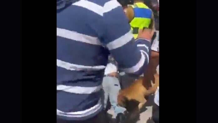 En los segundos que dura la grabación se observa que el can no suelta a su presa en ningún momento, hasta que finalmente, los policías suben al criminal en la batea de una patrulla.