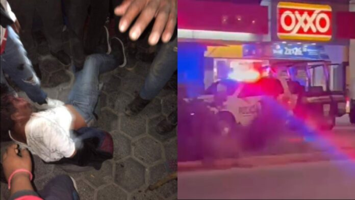 Testigos alertaron a las autoridades, por lo que elementos de la Policía Municipal arribaron al lugar para detener el intento de linchamiento de los pobladores en contra de una mujer y un hombre.