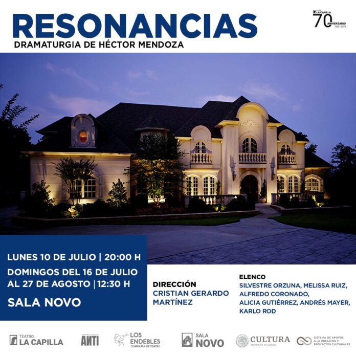 “Resonancias”, la última obra escrita por el dramaturgo y director Héctor Mendoza, es producida y dirigida por Christian Gerardo Martínez, que capitanea a los actores: Alfredo Coronado, Alicia Gutiérrez, Andrés Mayer, Karlo Rod, Melissa Ruiz y Silvestre Orzuna.