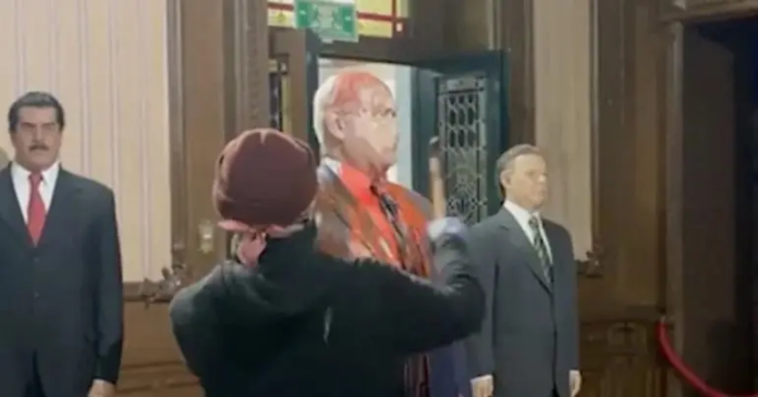 Propalestino destruye a martillazos la figura de Netanyahu del Museo de Cera de CDMX