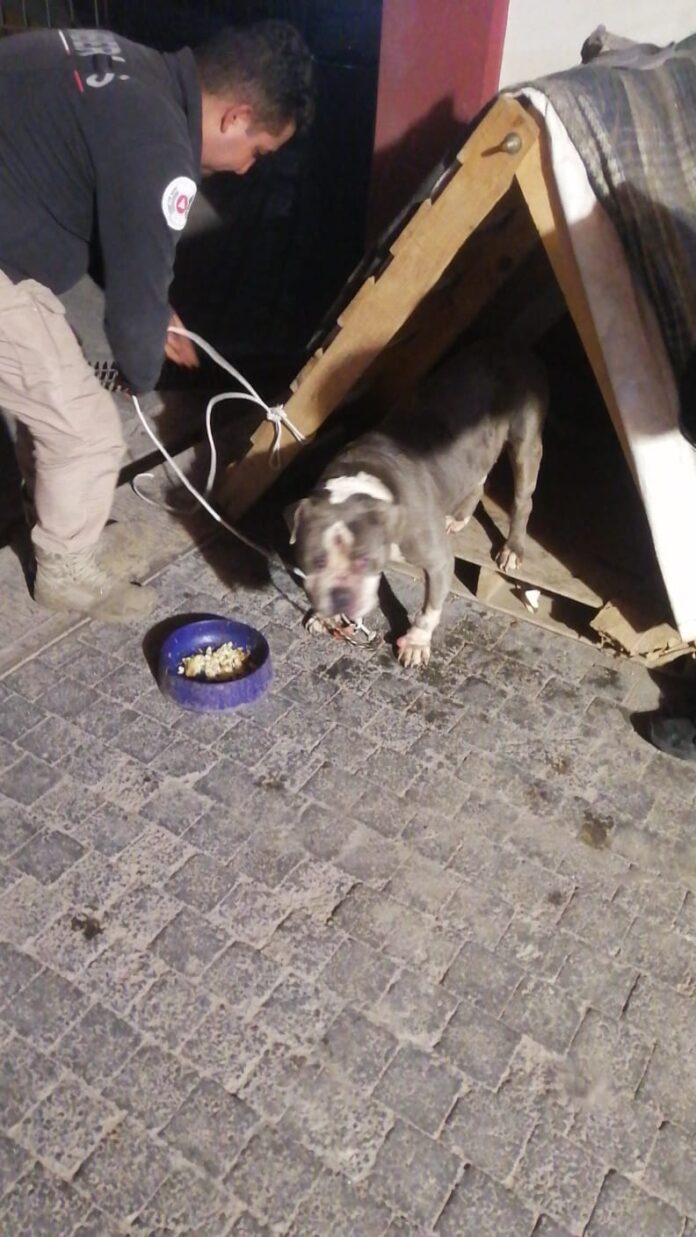 El operativo se realizó tras un reporte ciudadano que alertó sobre un pitbull amarrado con una cadena, sin resguardo ante el sol o la lluvia. Al llegar al sitio —entre las calles Playa de Mallorca y Playa Tabachines—, los rescatistas encontraron al can con lesiones visibles en la pata delantera izquierda y heridas menores en el rostro.