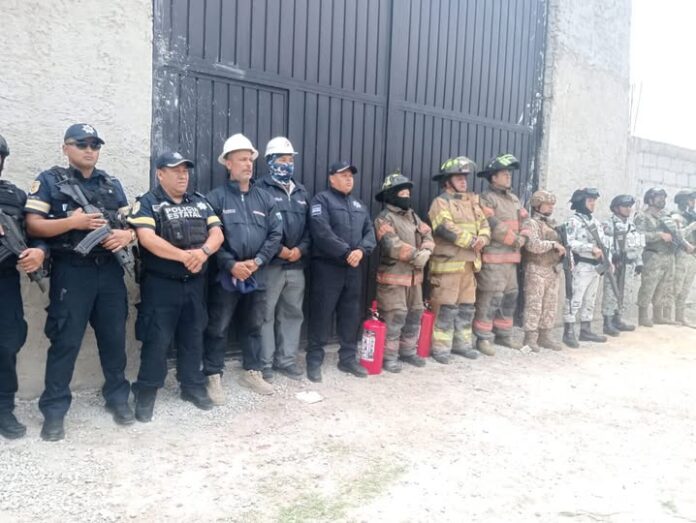 En la zona se desplegaron seis elementos de Bomberos y Protección Civil, quienes acordonaron el área y habilitaron líneas de seguridad en espera de la intervención especializada de Pemex.