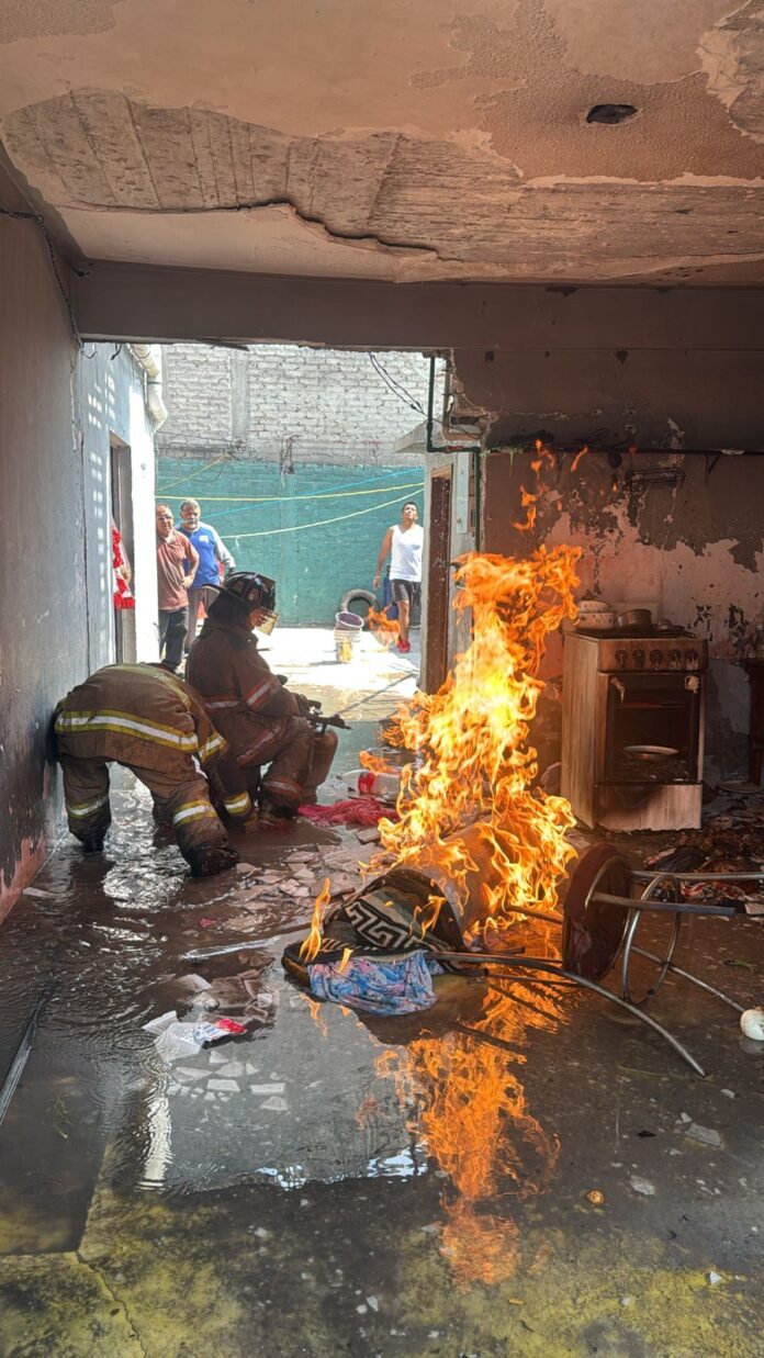 El incidente ocurrió en una casa ubicada sobre Prolongación Oaxaca, donde elementos de Protección Civil y Bomberos acudieron de inmediato tras recibir el llamado de auxilio. Al llegar, los cuerpos de emergencia localizaron dos cilindros de gas en llamas, uno de 20 kilos y otro de 10 kilos, dentro de un cuarto de aproximadamente 6 por 4 metros que era utilizado como cocina.