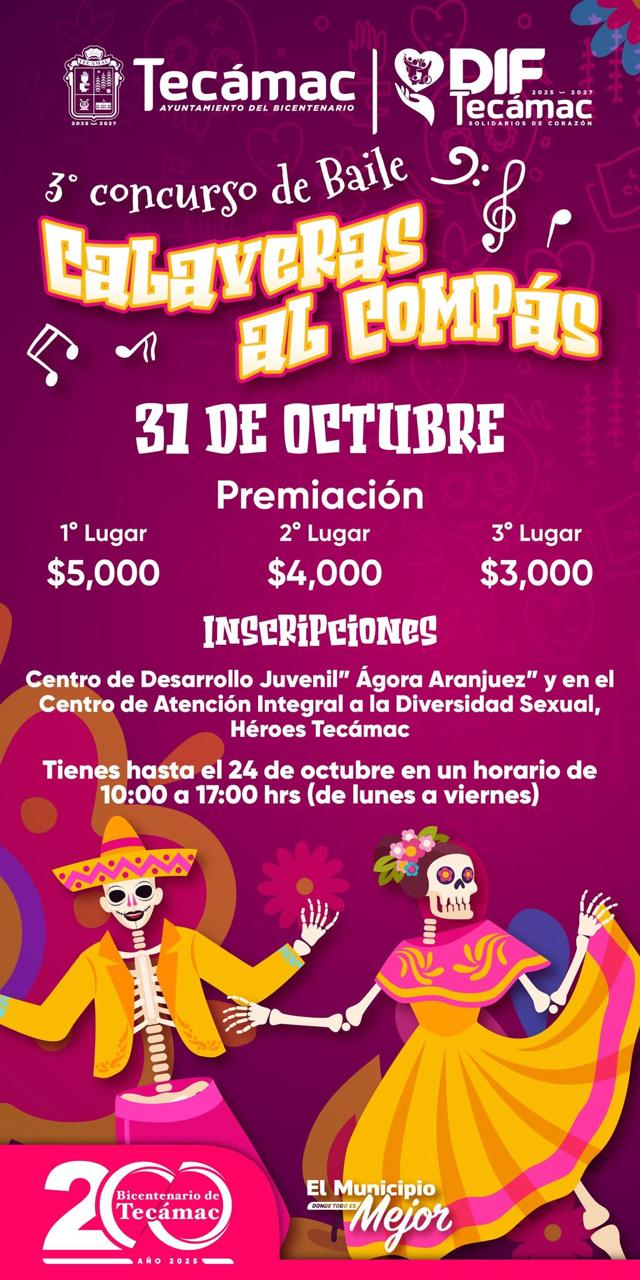 El sábado 1 de noviembre, por séptimo año consecutivo, el DIF Tecámac realizará la entrega de la tradicional “calaverita” en distintos puntos del municipio, mientras que las exposiciones permanecerán abiertas hasta el 2 de noviembre.