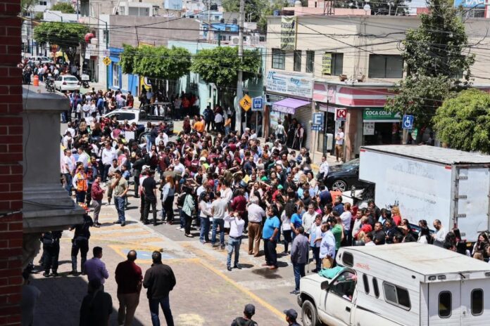 A las 12:00 horas, habitantes y servidores públicos participaron con responsabilidad en este ejercicio de prevención, cuyo objetivo fue reafirmar la importancia de la preparación ante emergencias. El escenario planteado consistió en un sismo de magnitud 8.1 con epicentro en Michoacán, que hipotéticamente causaría estragos en la región.