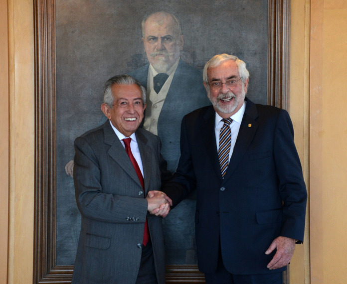 El rector de la UNAM, Enrique Graue Wiechers, recibió hoy en sus oficinas de la Torre de Rectoría, al nuevo presidente del Tribunal Universitario y decano de la Facultad de Derecho (FD), Everardo Moreno Cruz.
