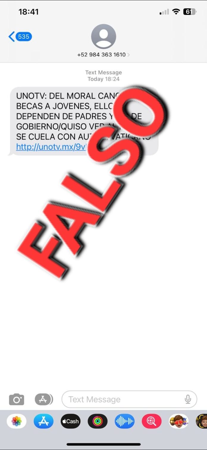 En dichos contenidos se difunde falsamente que Alejandra Del Moral cancelaría