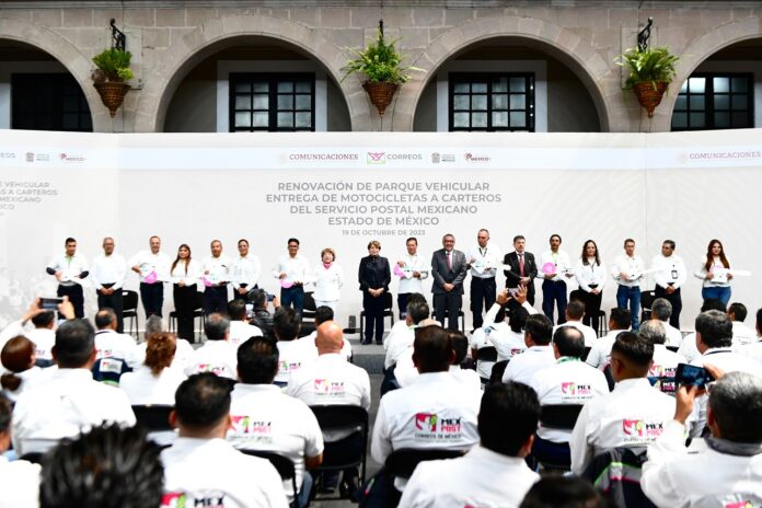 La Gobernadora Delfina Gómez Álvarez y Rocío Bárcena Molina, Directora General del Servicio Postal Mexicano, hicieron entrega de motocicletas a carteros del Estado de México, lo cual permitirá realizar su labor de manera más segura y agilizar los procesos de entrega y recolección de correspondencia.