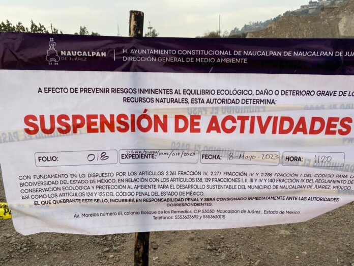 El gobierno de Naucalpan repuso los sellos de suspensión de actividades que fueron quebrantados en un predio ubicado en el kilómetro 8.5 de la carretera Naucalpan-Toluca, en El Capulín, que presuntamente fungía como mina de arena sin contar con oficio de manifestación de impacto ambiental.