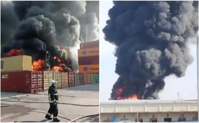 Un fuerte incendio se registra en el interior del puerto de carga de Veracruz, por lo que elementos de diversas corporaciones de auxilio activaron sus protocolos de ayuda.