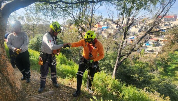 Paramédicos de la Alcaldía Álvaro Obregón realizaron el heroico rescate de una joven de 18 años que cayó la tarde de este jueves a una barranca de 70 metros en la colonia Colinas del Sur.
