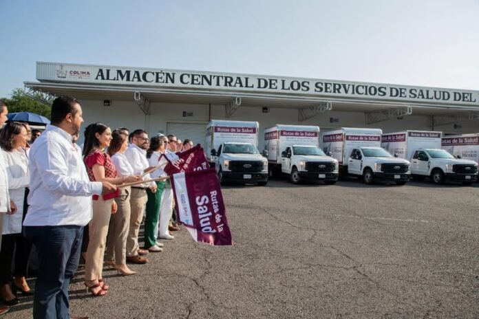 La jefa de Estado encabezó desde el Salón Tesorería la puesta en marcha de este ambicioso programa el cual contempla brinde atención a diversos estados del país como Hidalgo, donde 18 vehículos se suman a los 45 de los Laboratorios de Biológicos y Reactivos de México (Birmex) para garantizar el abasto continuo de medicamentos en las 484 clínicas de la entidad por medio de kits prearmados.
