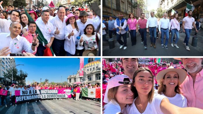 El líder del PAN, Marko Cortés también participó e insistió en que la democracia “no tiene precio”, por lo que advirtió que en Palacio Nacional escucharán que “el INE no se toca”.