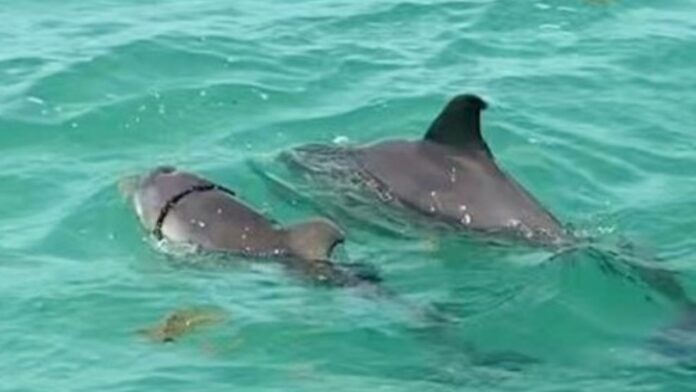 El pequeño delfín nariz de botella se reintegró a su familia y una embarcación se encargó de seguirlo, con la finalidad de verificar que no hubiera sufrido afectaciones.