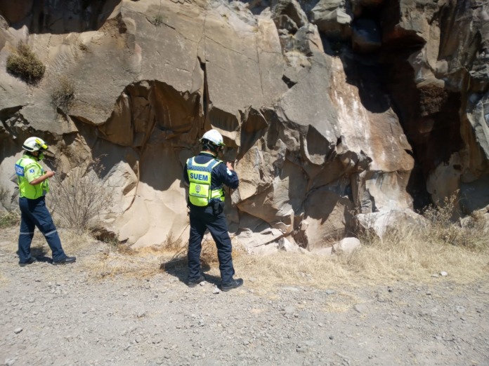 Paramédicos del Servicio de Urgencias del Estado de México (SUEM) y elementos de Seguridad del estado arribaron al sitio, luego de un reporte originado por el C5 de Toluca, que informó el derrumbe en la mina conocida como La Loma.