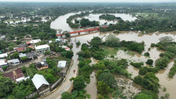 Derivado de la depresión tropical ‘Once-E’, se desbordó el río Coatzacoalcos, en Veracruz, lo que provocó inundaciones en al menos 51 comunidades, así como  la cabecera municipal de Jesús Carranza.