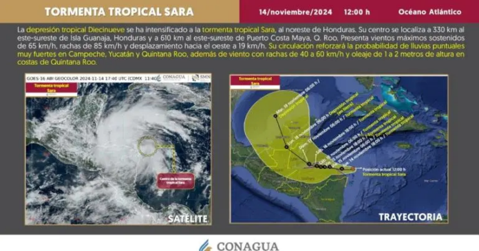 Originada a partir de la depresión tropical Diecinueve, se formó la tormenta tropical “Sara”, la cual incrementó su intensidad cerca de las costas de Quintana Roo.