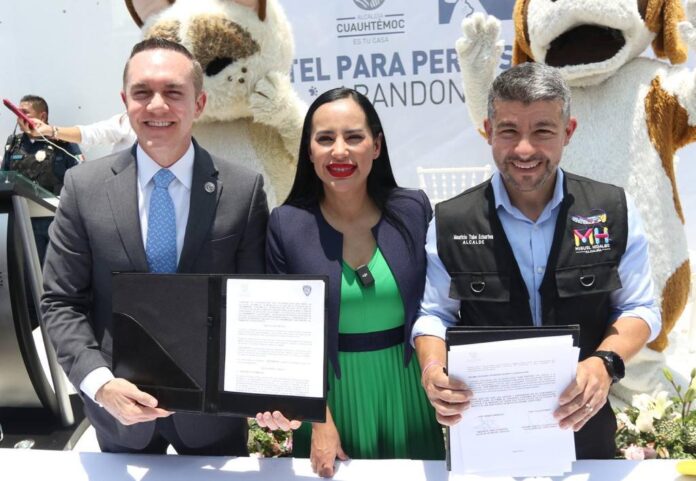La Alcaldesa de Cuauhtémoc, Sandra Cuevas, en compañía de los alcaldes de Miguel Hidalgo, Mauricio Tabe y de Cuajimalpa, Adrián Rubalcava, inauguraron  el Primer Hotel de Perros y Gatos Abandonados, único en su tipo de la Ciudad de México, localizado en la colonia Morelos donde estos seres en su proceso de adopción tendrán servicio médico, estética, vacunas y esterilización de manera gratuita.