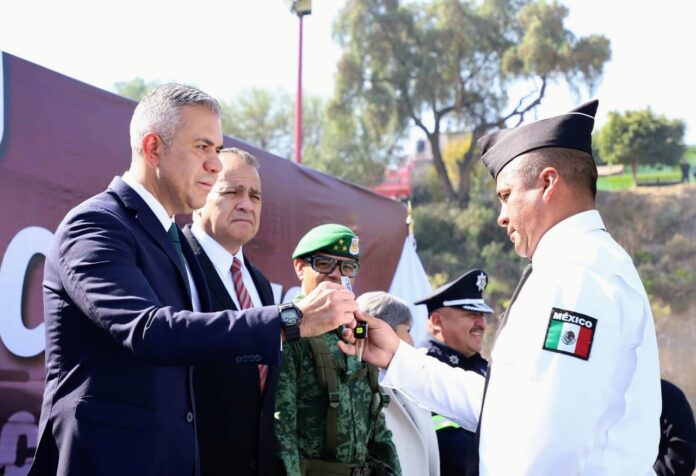 El presidente municipal en compañía de representantes de la Secretaría de la Defensa Nacional, Guardia Nacional, Secretaría de Seguridad de Ciudadana de la Ciudad de México, policía estatal y la Fiscalía estatal, realizaron la entrega simbólica de uniformes, armamento y patrullas a los 155 elementos que se incorporan a las filas de la Dirección de Seguridad Pública y Tránsito.