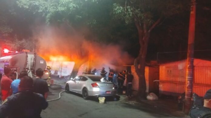 Se registra incendio en puesto ambulante en la alcaldía Azcapotzalco