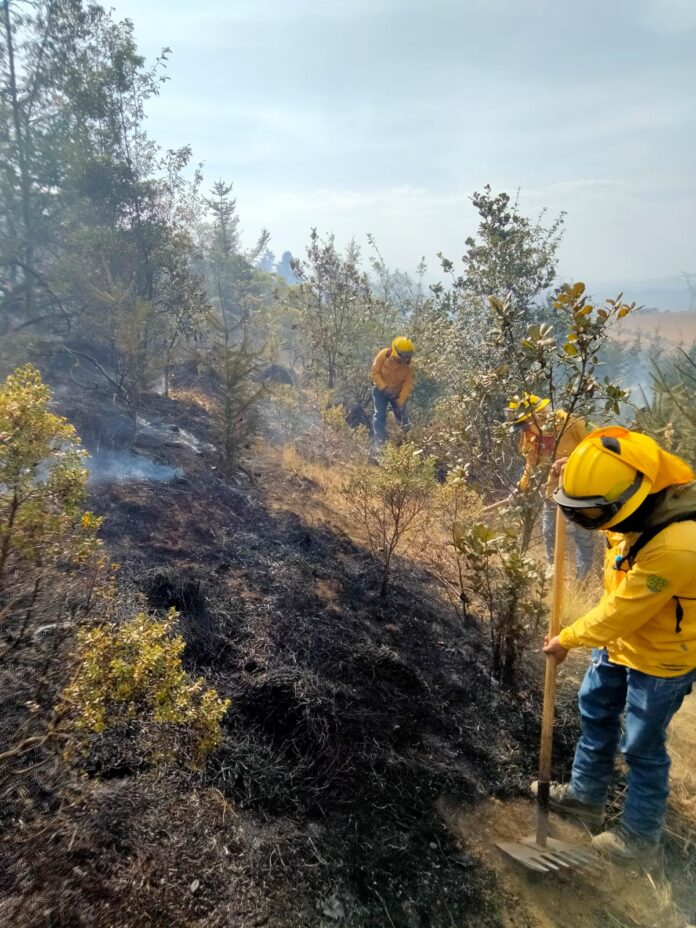 De acuerdo con el reporte de la Dirección de Protección Civil, Bomberos y Atención Médica Prehospitalaria, en la zona en donde se registra el incendio forestal, laboran 40 pobladores de la comunidad, coordinados por 22 elementos de la Protectora del Bosque del Estado de México (PROBOSQUE)22 elementos de bomberos de Texcoco, así como una cuadrilla de la Comisión Federal de Electricidad (CFE), quienes laboran en el combate al fuego.