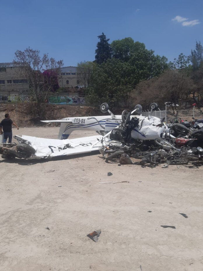 Secretaría de Seguridad del Edomex auxilia en desplome de aeronave en Atizapán de Zaragoza