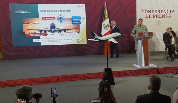Durante la conferencia matutina, Sandoval detalló que Mexicana de Aviación prestará servicio de transporte de pasajeros, carga y de correo a lo largo del País, aunado a que la flota estará compuesta inicialmente por 10 aviones Boeing.