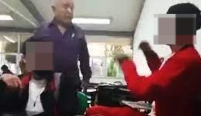 En 30 segundos de grabación se muestra al docente pronunciando una frase un poco inaudible, de la cual se identifica: “Te vas a tragar, hijo de tu…”