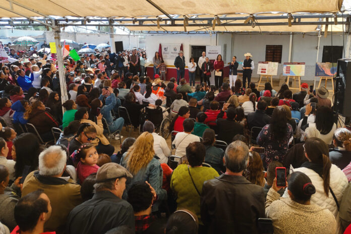La titular del Ejecutivo federal encabezó un acto masivo en Bermejillo, Durango, acompañada por los gobernadores de Durango, Esteban Villegas, y de Coahuila, Manolo Jiménez.