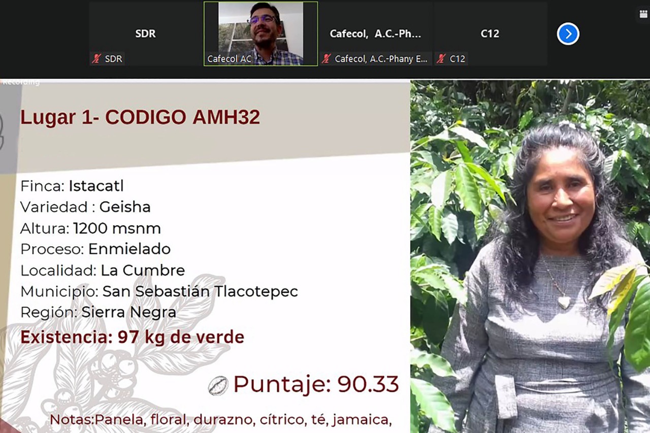 Marta Cortés Tapia, quien obtuvo el primer lugar, presentó su variedad Geisha, cosechada a mil 200 metros sobre el nivel del mar en la finca Istacatl, en el municipio de San Sebastián Tlacotepec.