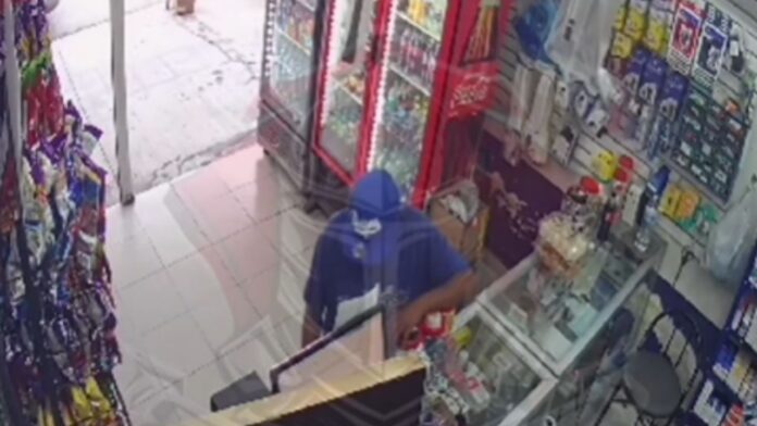 Los hechos ocurrieron el pasado miércoles 17 de julio, en un local ubicado en avenida Juárez, cuando un hombre con playera y gorra azul entra al lugar y se dirige al mostrador.