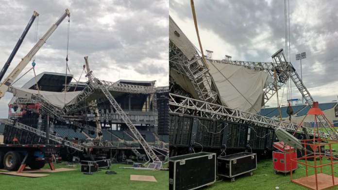 Elementos de la Coordinación Estatal de Protección Civil de Sonora suspendieron el Festival “Puro Chuqui”, por el derrumbe del escenario en el Estadio Yaquis ubicado en Ciudad Obregón.