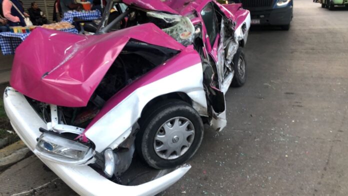 Sin embargo, en ese momento el taxista fue embestido por la pesada unidad, por lo que quedó prensado contra un poste que se encontraba en la zona y su vehículo quedó destrozado.