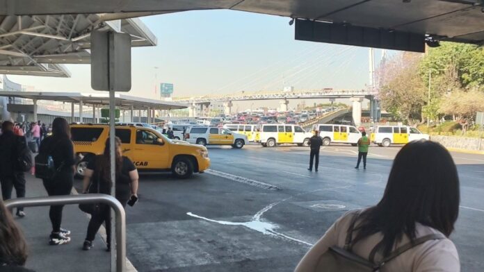 Taxistas concesionados bloquean accesos a la Terminal 1 del AICM