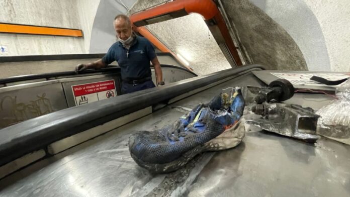 De acuerdo a la tarjeta informativa, el calzado se atoró en uno de los peldaños, lo que provocó que los rodillos que forman parte del mecanismo se vieran afectados.