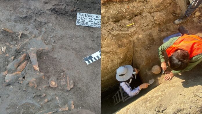 Tesoro arqueológico en Puebla: Descubren 11 entierros en obras de drenaje en Cholula