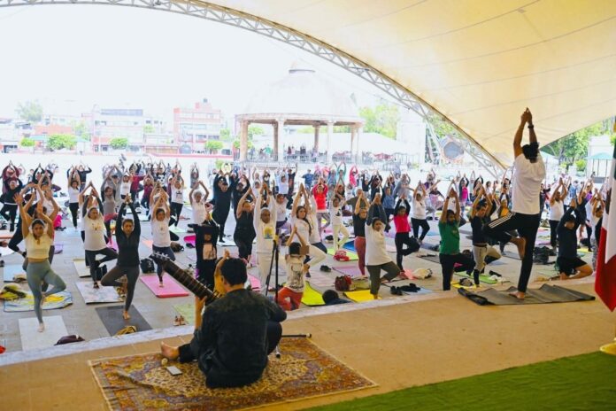 Posteriormente, en el Teatro Algarabía, se llevó a cabo una emotiva Clase Masiva de Yoga, dirigida por el maestro Narendra Pahade y que contó con la distinguida presencia del Embajador de la India en México, Pankaj Sharma, quien recordó el valor universal del yoga como filosofía de vida.