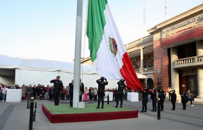 Con el objetivo de fortalecer los valores cívicos y la identidad nacional, el presidente municipal Raciel Pérez Cruz encabezó la ceremonia solemne de Izamiento de Bandera en la Explanada Municipal de Tlalnepantla, acto que reunió a autoridades, servidores públicos y representantes de distintas áreas del gobierno local.