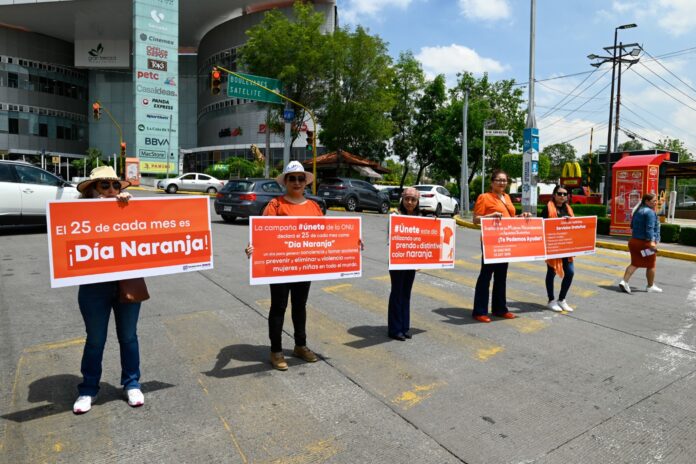 Personal del Instituto de las Mujeres Naucalpenses y la Igualdad Sustantiva (IMNIS) salió a las calles del municipio para conmemorar el Día Naranja y concientizar a la población sobre la importancia de erradicar la violencia en contra de ellas, además de impartir talleres que acercan a los jóvenes, herramientas para identificar sus diferentes manifestaciones y los mecanismos para atenderla.